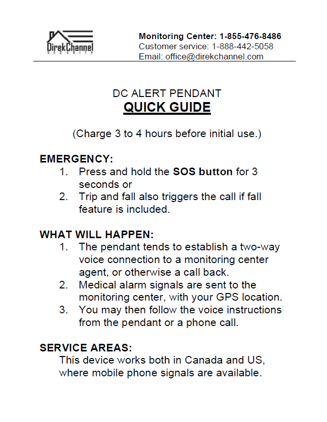 This guide is only for panic pendants or medical pendants. For other panic devices, please contact our office.
